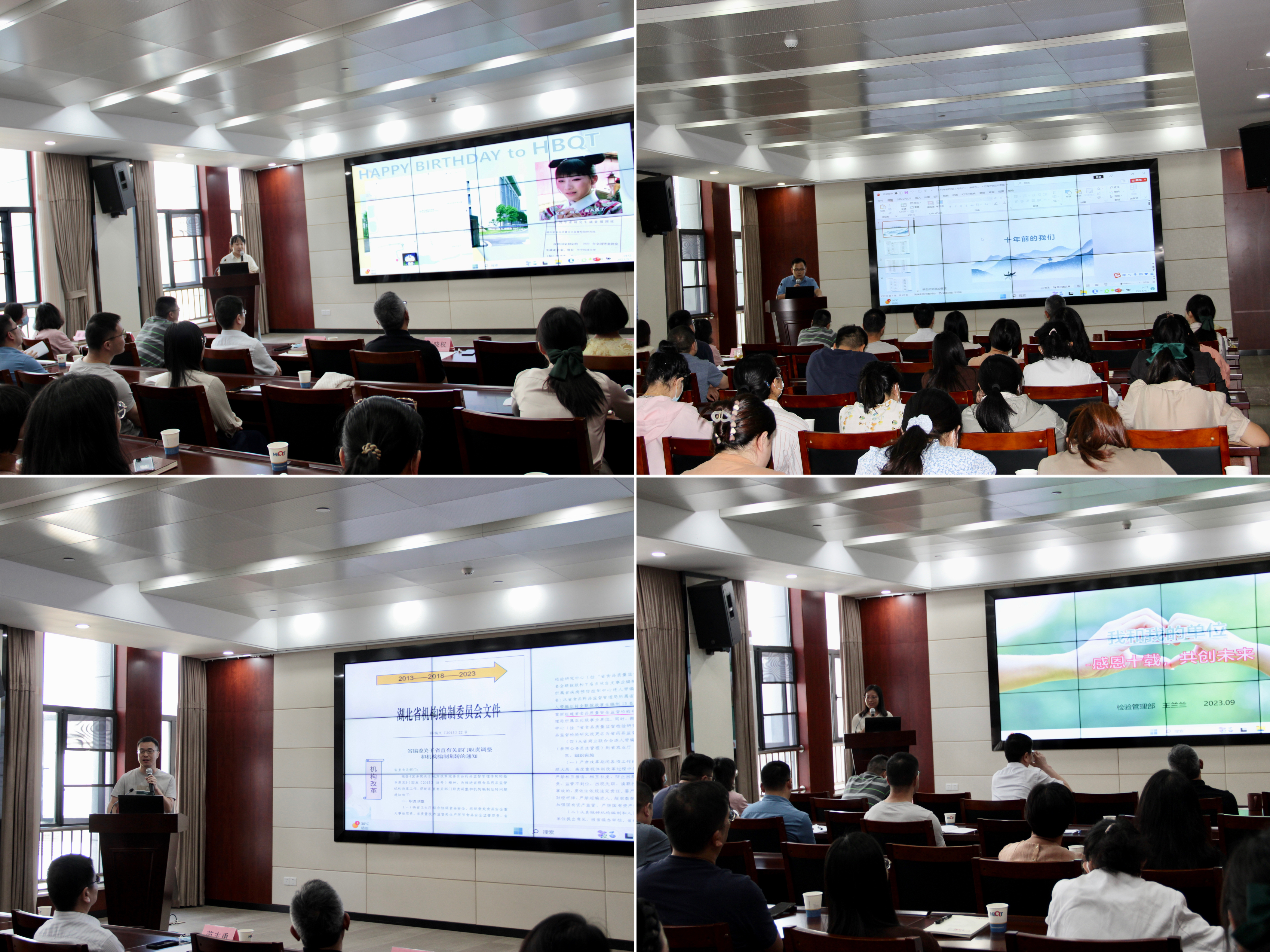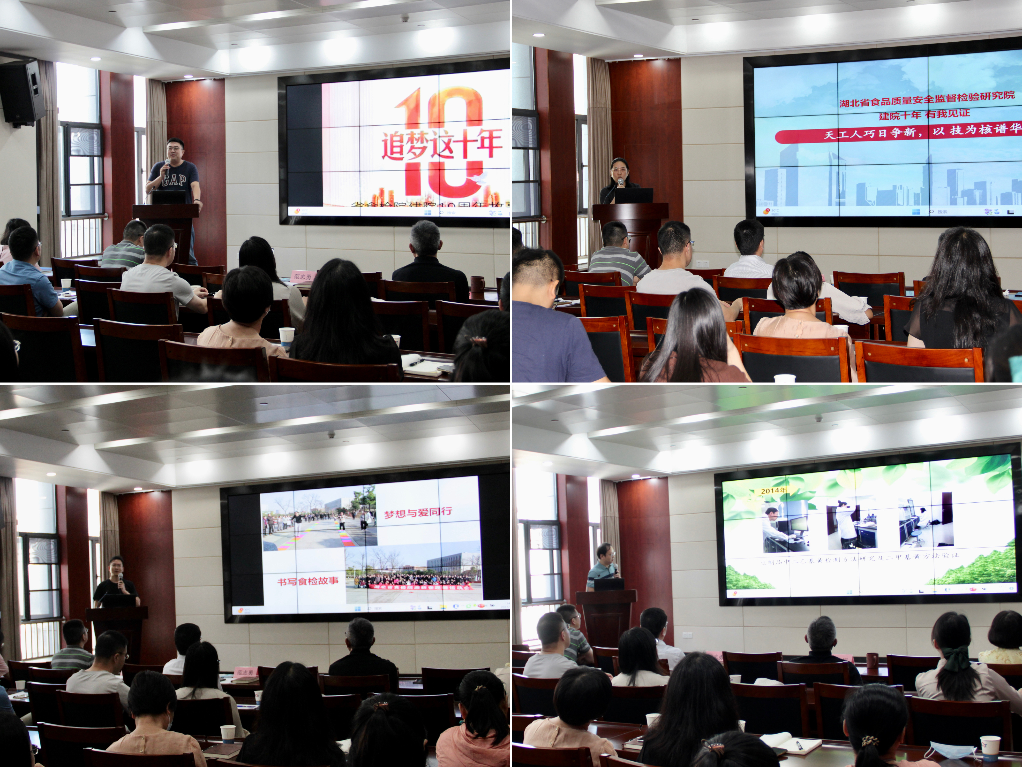 现场气氛活跃,掌声不断。一张张照片,一组组数据,一行行文字拉开回忆的闸门,记录着我们从南湖文治街走到光谷生物城的点点滴滴,从租用检测场地到入驻自有检测大楼的艰辛历程,有欢笑、有泪水,有收获、有遗憾,有同舟共济的感动、也有一路相伴的温暖……讲述者们通过一个个精彩的小故事述说着过去十年的风雨兼程,展示着今天的非凡成就,也寄予了对未来的美好期愿,现场职工感同身受,热情澎湃。