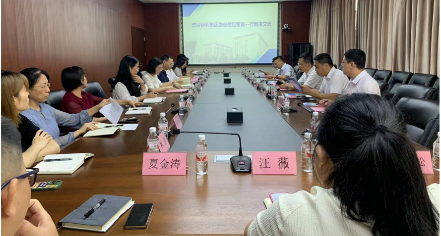 2024年9月3日,内蒙古伊利实业集团股份有限公司副总裁包智勇一行7人来访。省食检院党委书记、院长李涛、副院长张莉、总工程师黄茜陪同来访人员参观了实验大楼,并召开座谈会。
