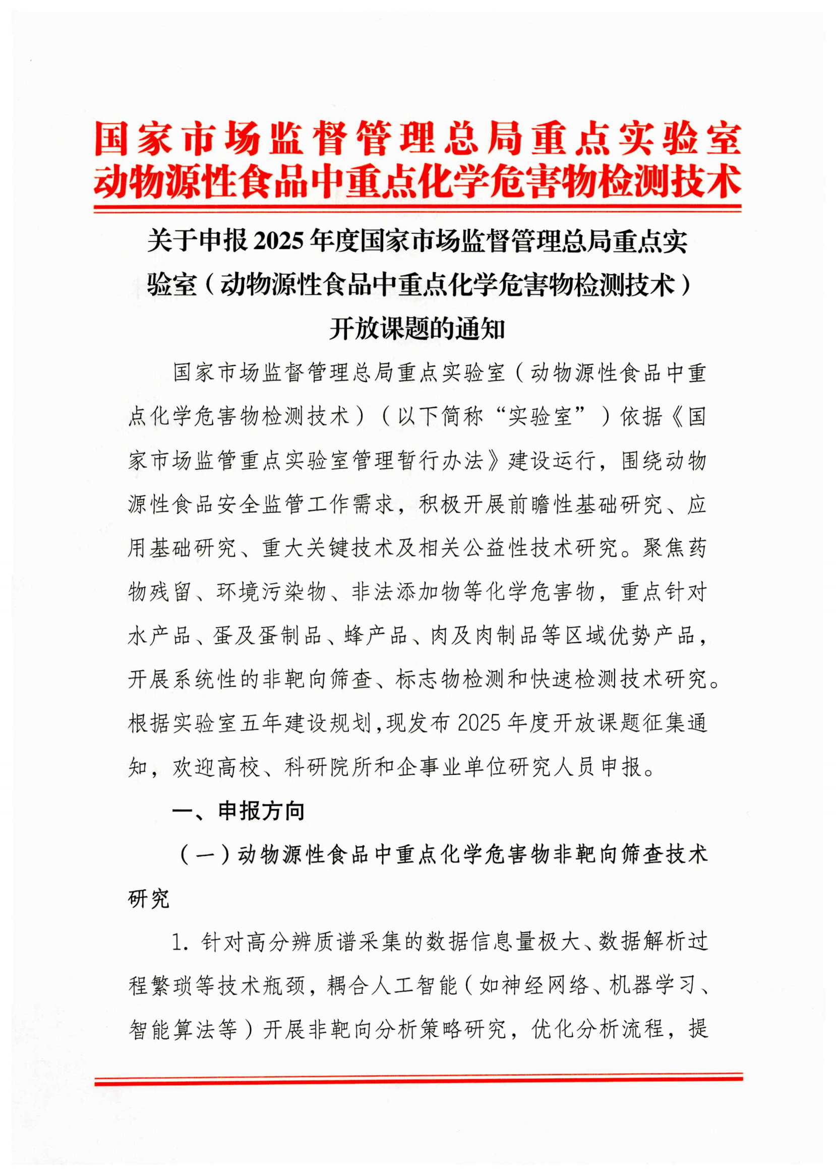 关于申报2025年度国家市场监督管理总局重点实验室开放课题的通知