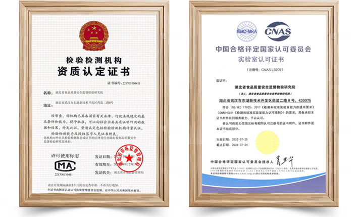 法规要求建立了完善的质量管理体系,通过了国家实验室认可和省级资质认定。已取得的检验资质包括:实验室认可(CNAS)532类检测对象1285个参数;检验检测机构资质认定(CMA)1259个产品和8499项参数。具备食品、食品添加剂、保健食品、食用农产品、食品接触材料等产品中的质量指标、营养成分、功效成分、农兽药残留、重金属、生物毒素、食品添加剂、非法添加物、微生物和分子生物学、其他污染物等检验能力。