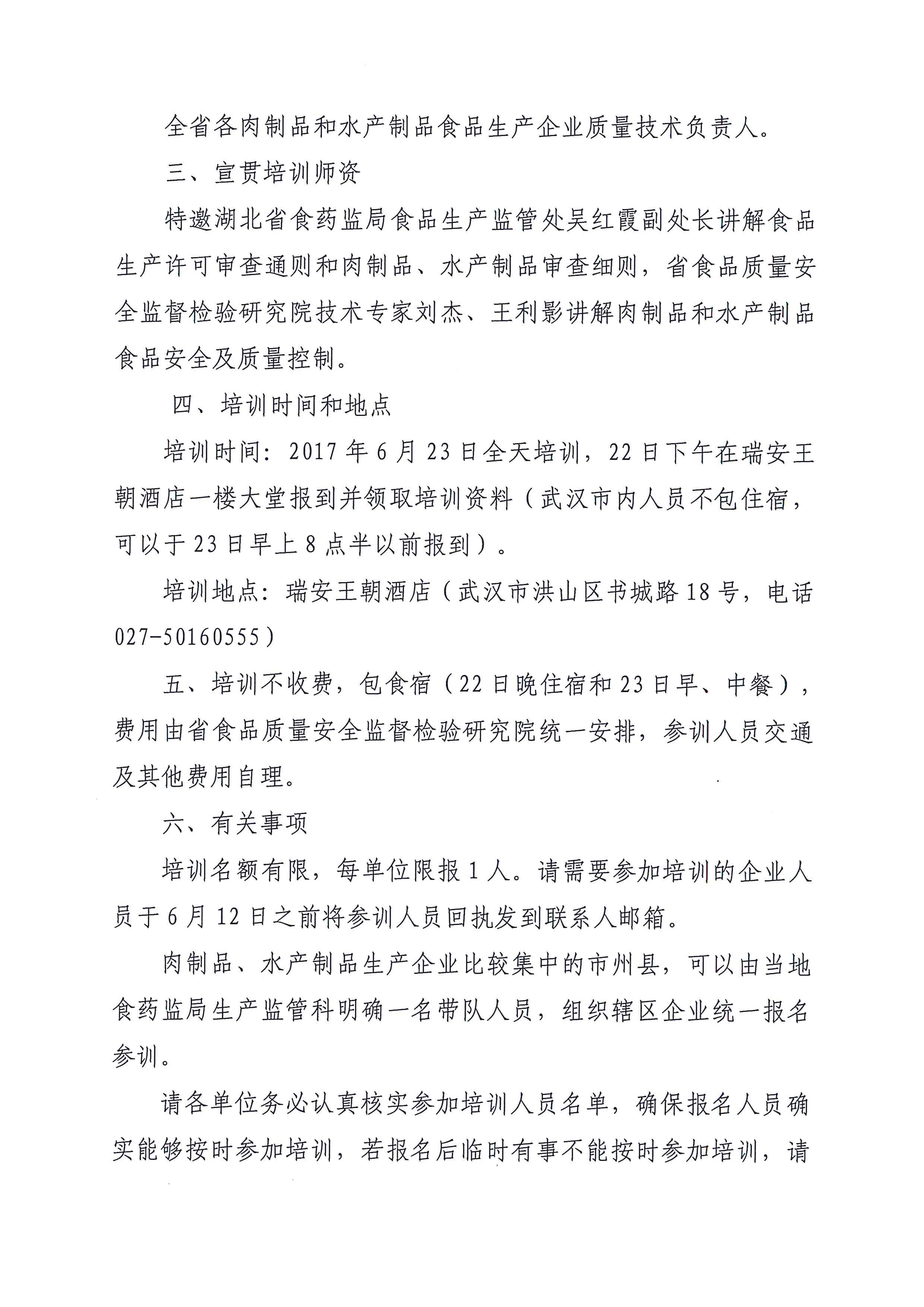 关于举办全省肉制品和水产制品食品安全专项培训的通知