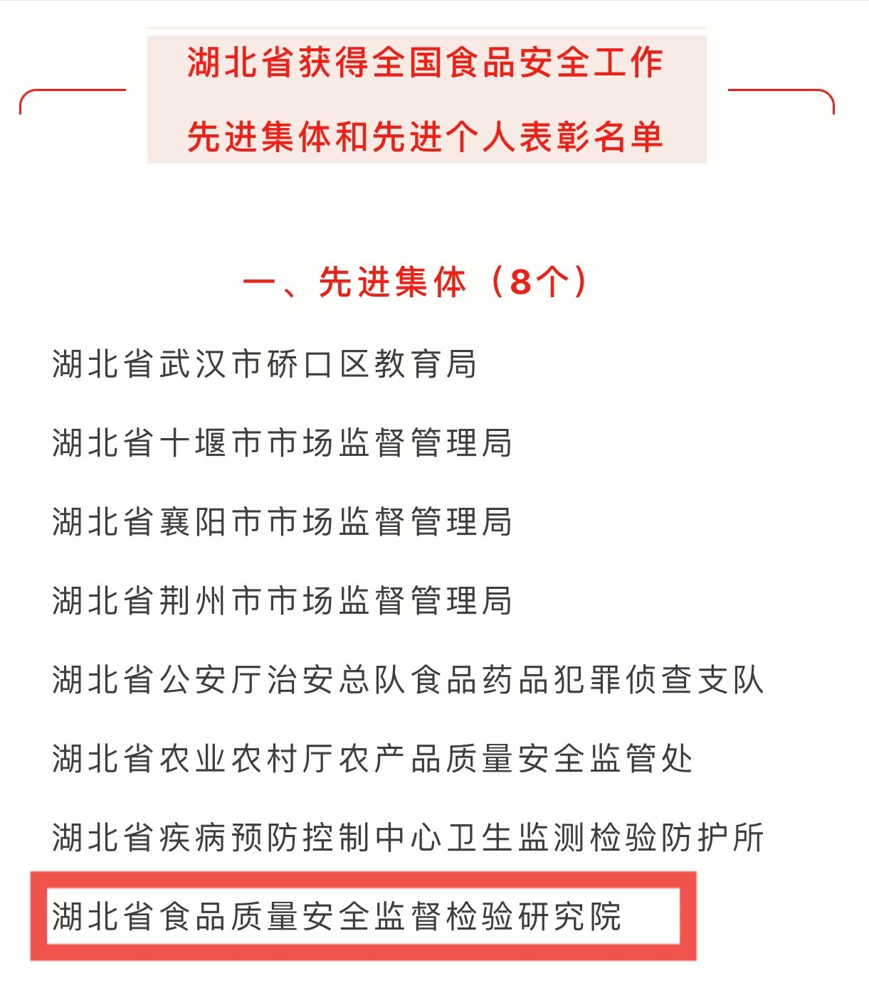 4月16日下午,国务院食品安全委员会召开全国食品安全工作先进集体和先进个人表彰电视电话会议。我院被授予“全国食品安全工作先进集体”荣誉称号。