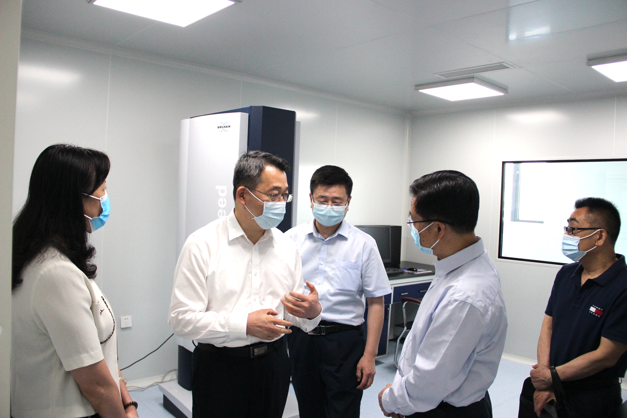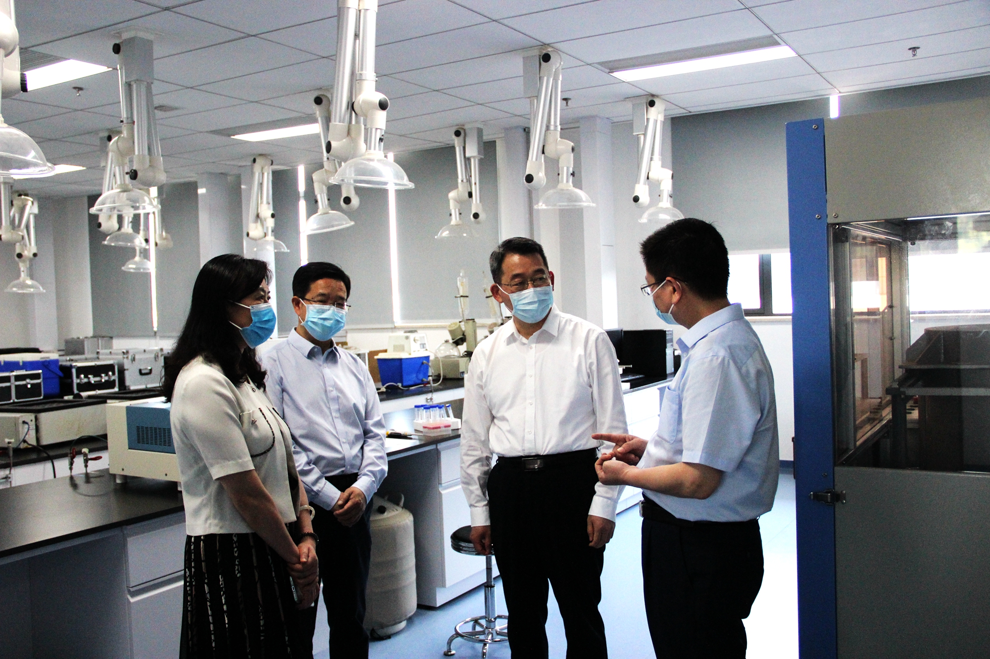 张文兵一行实地查看了我院超大型仪器设备和现代化食品检测实验室,并在省医疗器械院召开了座谈会。