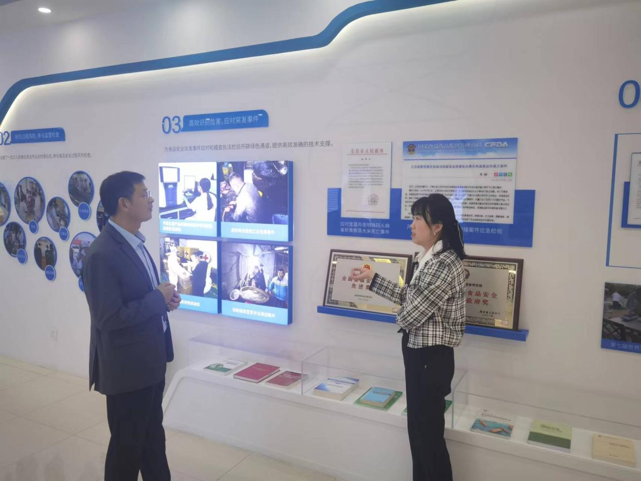参观过程中,覃先武一行对省食检院发展历程、业务能力、实验室平台建设、科研工作等方面进行了详细地了解。