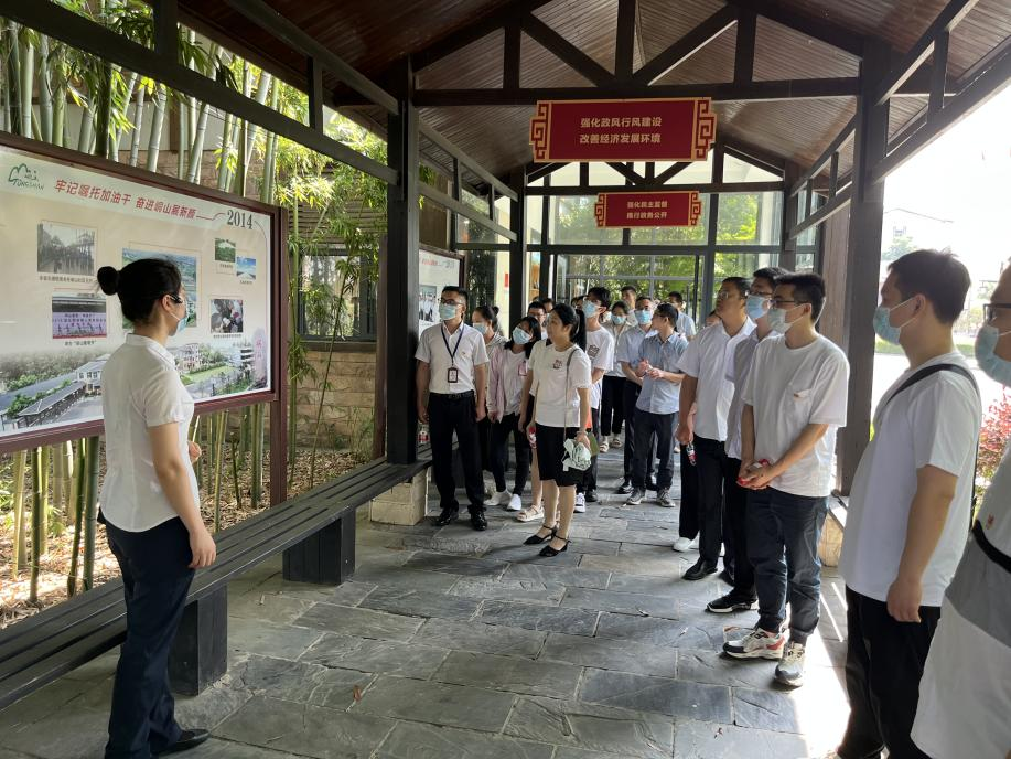 随后,参观了峒山村风雨回廊和党员服务中心,了解了峒山社区在城乡一体化、产业发展、精准扶贫、基层党建等方面的探索和成就。