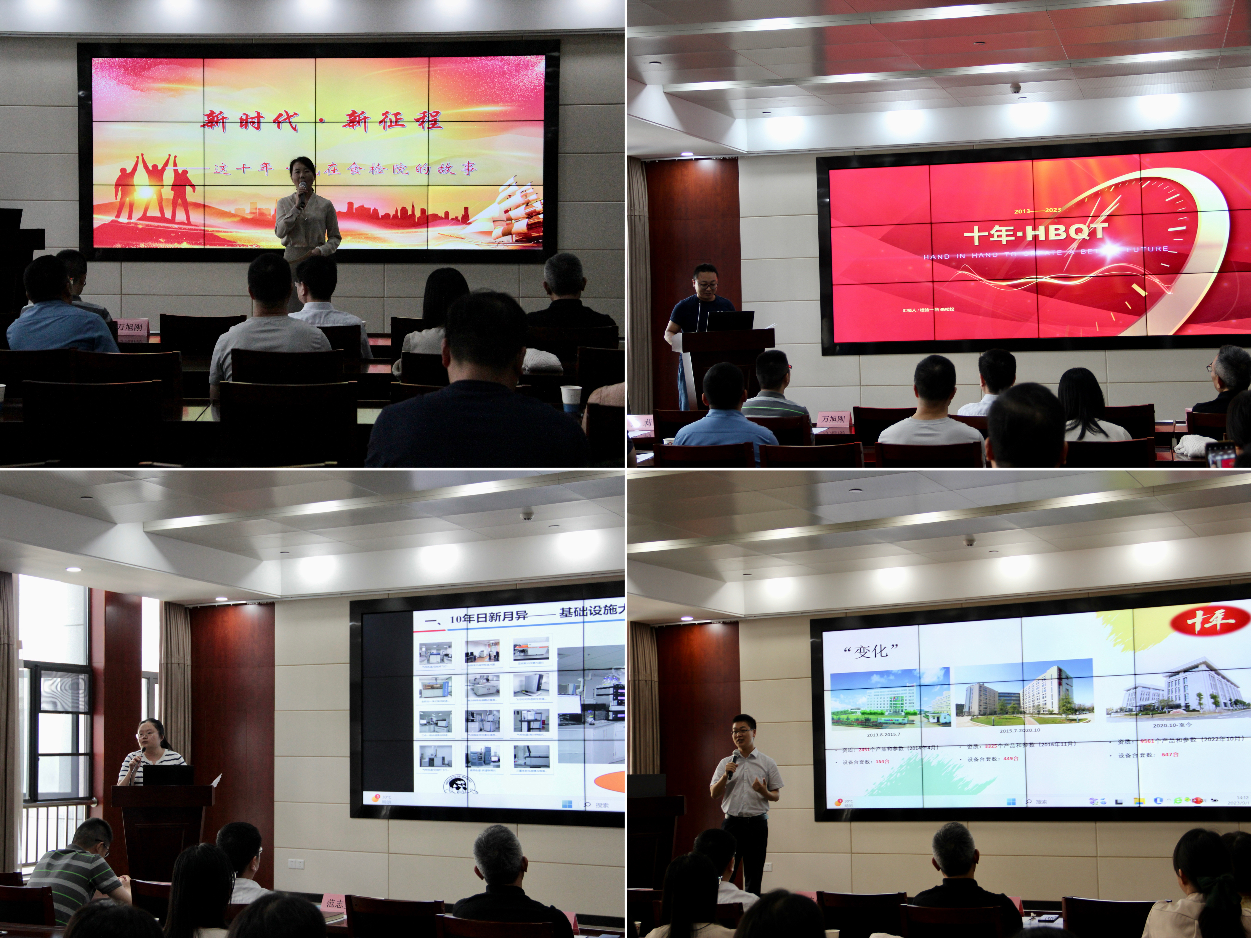 现场气氛活跃,掌声不断。一张张照片,一组组数据,一行行文字拉开回忆的闸门,记录着我们从南湖文治街走到光谷生物城的点点滴滴,从租用检测场地到入驻自有检测大楼的艰辛历程,有欢笑、有泪水,有收获、有遗憾,有同舟共济的感动、也有一路相伴的温暖……讲述者们通过一个个精彩的小故事述说着过去十年的风雨兼程,展示着今天的非凡成就,也寄予了对未来的美好期愿,现场职工感同身受,热情澎湃。
