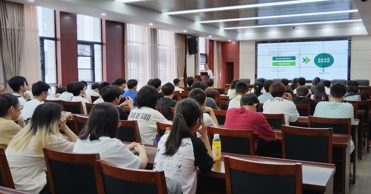 省食检院汪薇博士为前来参观的同学们做了关于食品安全的讲座,简要分享了我国食品安全管理情况以及食品安全检验的相关知识。