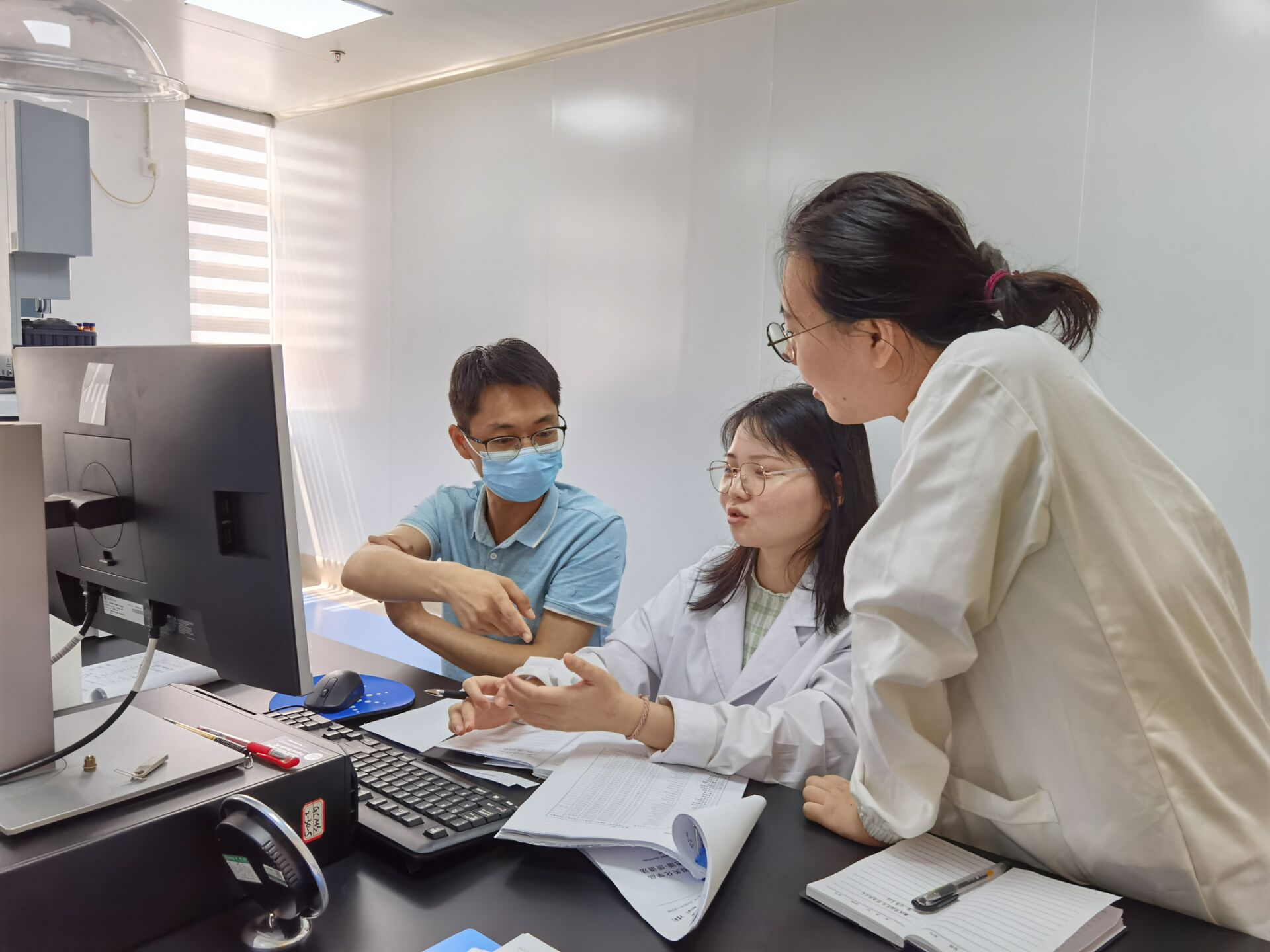 下午,围绕气相色谱质谱联用仪、液相色谱质谱联用仪、原子吸收光谱仪的操作应用,专家团队带领赤壁公检中心检验人员分成三个小组,进入实验室、开启仪器和电脑,进行实操演练、方法应用和实际经验分享。公检中心技术人员认真地学习、思考和提问,在反复研讨中收获了知识和技能。